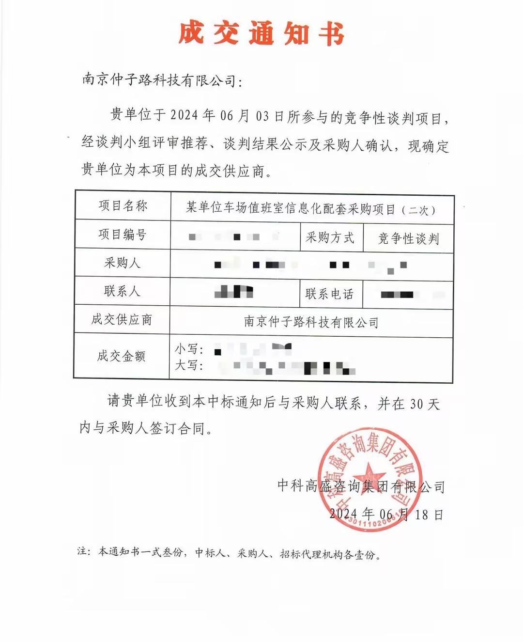 2024年6月3日,我司荣幸地被确定为某部队车场值班室信息化配套的成交供应商。