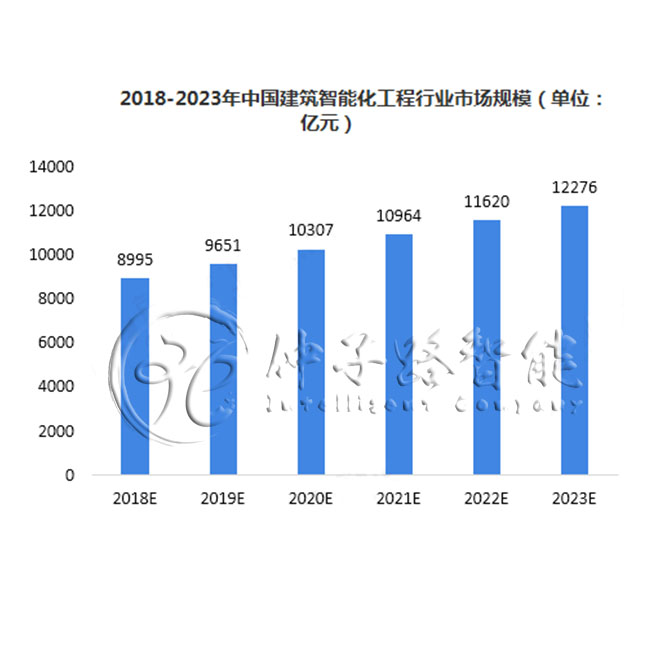 随着社会、经济和信息技术的发展,人们对各类建筑和基础设施的业务支持功能、环境功能和服务功能的迫切需求驱动,形成了以建筑为业务载体的智能化心博网页版在线登录市场。建筑智能化心博网页版在线登录需求一方面来自于新建建筑的智能化技术的直接应用,另一方面来自于既有建筑的智能化改造。如今,我国在信息化,智能化飞速发展的阶段,在“互联网+”、“大数据”等国家重大战略的实施带动下,智慧城市作为新型城镇化和信息化的最佳结合,将会有力推动我国城镇建设中的智能化心博网页版在线登录的应用扩大,提高新建建筑智能化心博网页版在线登录应用率,加快既有建筑智能化心博网页版在线登录改造。未来相当长时间内,智能化建筑市场的规模仍将不断提升。根据根据前瞻产业研究院《2018-2023年中国建筑智能化心博网页版在线登录行业市场前瞻与投资规划分析报告》数据显示,2018年,中国建筑智能化心博网页版在线登录行业市场规模达到约9000亿元,2019年将超过9650亿元,及至2023年将突破12000亿元(如图所示)。