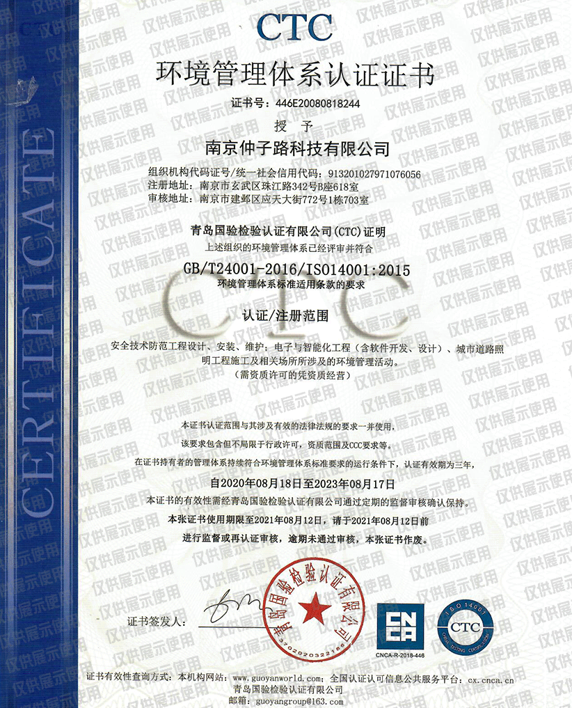 仲子路智能成立与2007年,是专业从事智能化系统设计,施工和服务的集成商,14年专注于智能化系统、办公自动化系统、安防监控系统、综合布线系统、进出口管理系统、灯光音响系统、公共广播系统、LED显示屏系统、机房建设(改造,搬迁)等领域的心博网页版在线登录业务、资质证书齐全主要包含:建筑智能化施工资质、城市及道路照明心博网页版在线登录专业承包资质、安防心博网页版在线登录企业资质。拥有权威机构授予的ISO9001质量体系认证、ISO14001:2015环境管理体系认证、18001:2007职业健康安全管理体系、高新技术企业证书、江苏质量诚信AAA品牌企业、行业领军先进企业,江苏优质诚信企业等荣誉称号等。