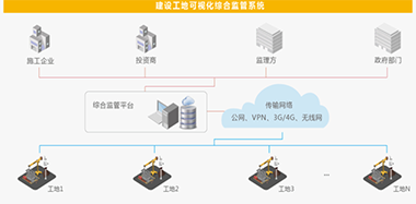 智慧工地可视化综合监管系统,以视频监控应用为基础,结合物联网技术、智能化技术、大数据分析技术等,实现对前端工地各个场景、设备、人员、车辆的综合管控。